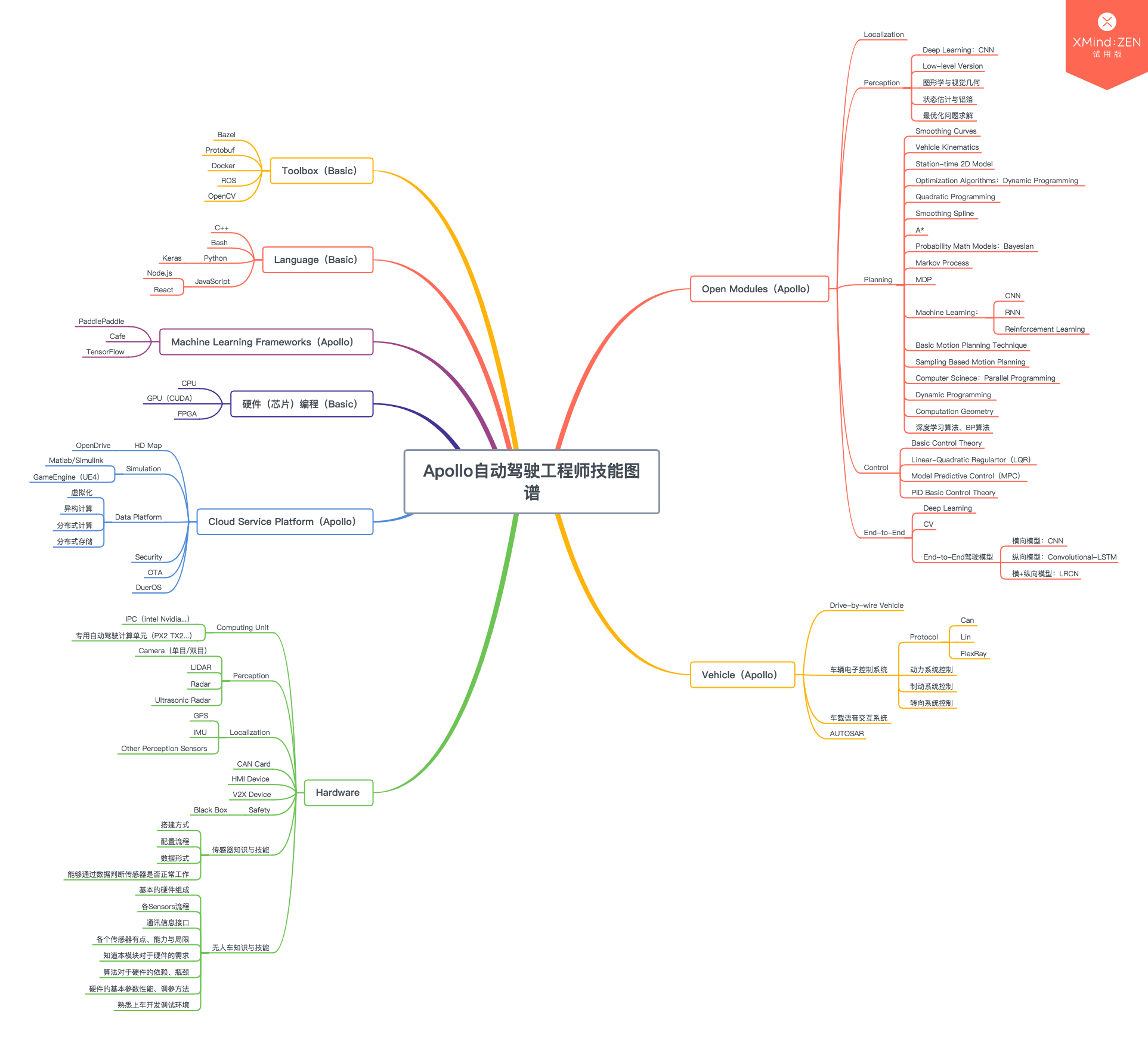 技能图谱-Apollo自动驾驶 Posted on 2018-03-17 Edited on 2018-03-24 In 技能图谱 Symbols count in article: 38 Reading time ≈ 1 mins. Apollo自动驾驶工程师技能图谱 今年参加AICon大会时,参与活动获得了一些知识图谱手册,在这里分享给大家